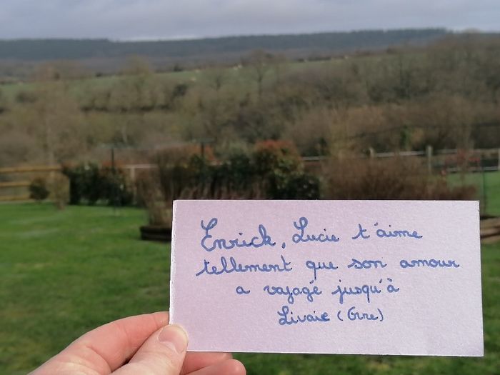 Hello les filles ! Je suis toujours à la recherche de Love note .. "Enrick, Lucie t'aime tellement que son amour a voyagé jusqu'a ..." Voici les lieux que j'ai déjà : 01, 02 03 04 06 17 26 35 37 53 44 63 69 74 85 Belgique et Los Angeles En échange je...