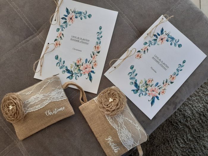 Salut les brides to be, vous allez bien ? Voici mes réalisations du jour. J'ai mis le temps mais j'ai enfin fini les livrets ainsi que les kits pour mes demoiselles d'honneur !Voici ce que ça donne : Livret et kit Vous en pensez quoi ? Je leur donne...
