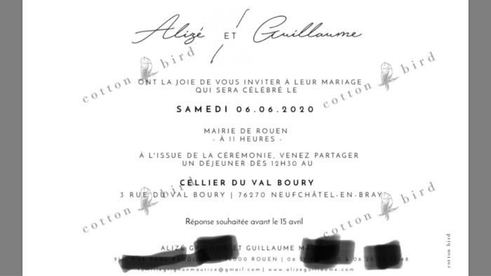 Salut la commu, J’ai envoyé cette nuit nos save the date, la liste des invités ne bougera donc plus ! Nous avons fait notre dégustation traiteur samedi dernier (trop bien !!), j’ai (enfin !) la bague au doigt, le dossier mairie est en cours... bref...