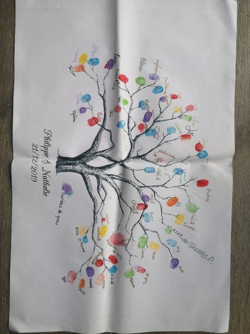 Voilà texte de présentation pour le livre d’or et l’arbre à empreintes fait et plastifié plus qu’à faire le présentoir avec des branches Contente de moi Qu’en pensez vous ?