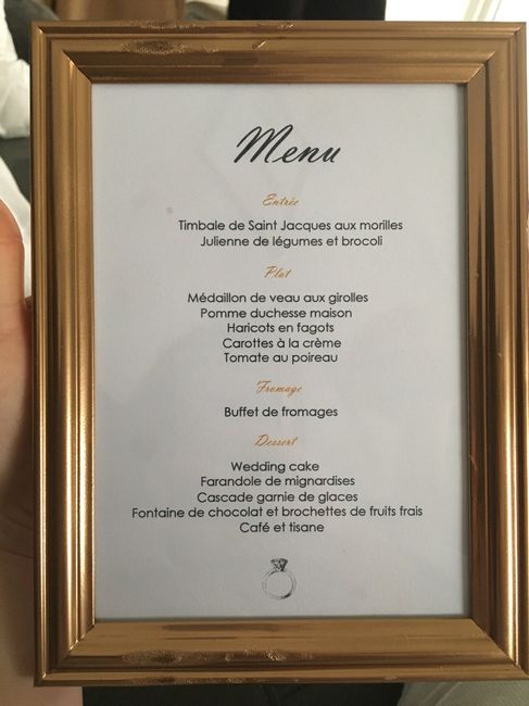 Salut les FM ! Aujourd’hui essai des menus. Qu’en pensez vous ? Quelque chose me dérange mais je ne saurais pas dire quoi .... La couleur du cadre ? La couleur de l’écriture ? J’attends vos avis Les traces n’étaient pas prévues au programme, chéri a...