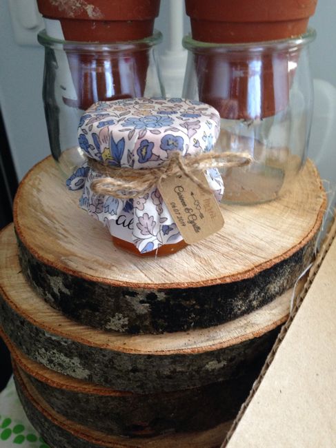 Petit panier avec de la lavande pour la sortie de la Mairie et petit pots de fleurs pour les invités pour les femmes et les hommes petits pots de confitures