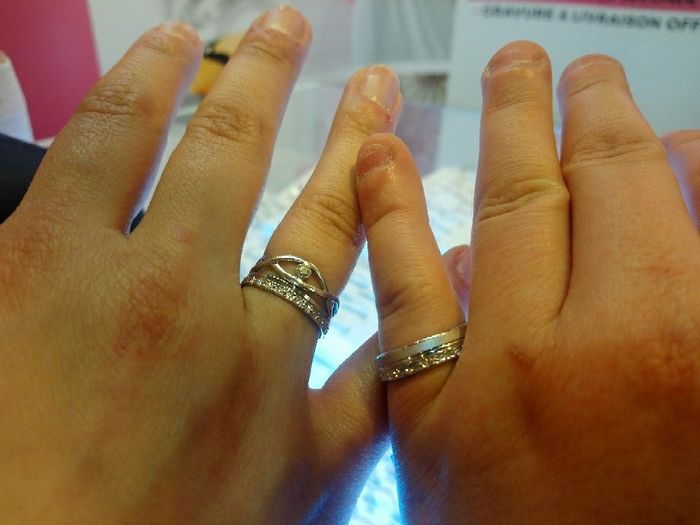 Coucou à toutes.. Date bientôt fixée.... Et déjà bous avons craqué pour les alliances... Je ne pensais pas du tout réglé ça de suite... Coup de coeur à un salon du mariage !! On est trop contente 😊