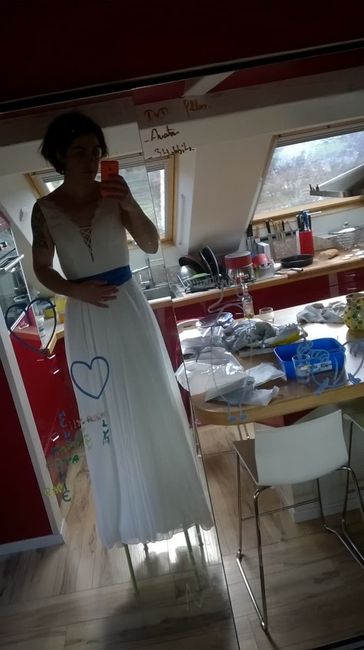 hello! vous etes toutes tellement sympas avec vos réponses que je me tourne de nouveau vers vous!!! je vais probablement avoir une robe simple blanche ou ivoire avec une ceinture bleu roi (rapport aux couleurs de notre thème) mais comme je suis pas...