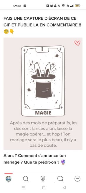 Coucou tout le monde 💜 Merci d'avoir participé jusqu'au bout ! Maintenant qu'on en sait un peu plus sur ton mariage, on va pouvoir tirer les cartes... FAIS UNE CAPTURE D'ÉCRAN DE CE GIF ET PUBLIE LA EN COMMENTAIRE !! 🧐👇 Alors ? Comment s'annonce ton...