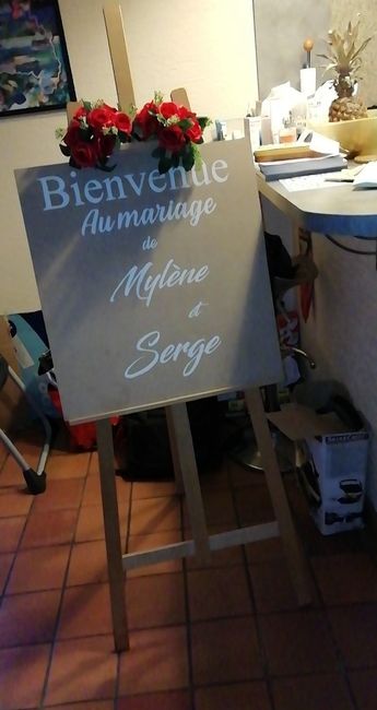 Cc la team aujourd'hui a mon tour de vous demandez votre avis Mon cadre fait 63x60cm - est ce que le texte est bon niveau taille - quelle présentation choisir photo 1 ou photo 2 Merci pour votre ps: mon futur voit le panneau et me dit c'est pas mal...