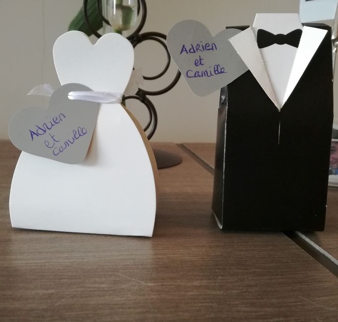 Bonjour la commu !! J'ai reçu aujourd'hui mes contenants pour dragées. Comment vous trouez ? (Attention : l'écriture est subjective, c'est juste pour que l'on se rende compte du rendu) Mais je crois que mon conjoint n'est pas fan… :/ Contenant à...