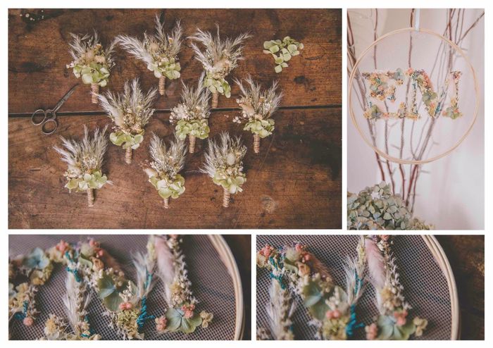 Bonjour à toutes ! Voici les presque dernières réalisations en fleurs séchées. Tout d'abord des boutonnières pour les témoins de Monsieur ainsi que pour le marié et nos Papas... J'en ai fais un petit tuto sur Youtube pour celles qui auraient envie de...