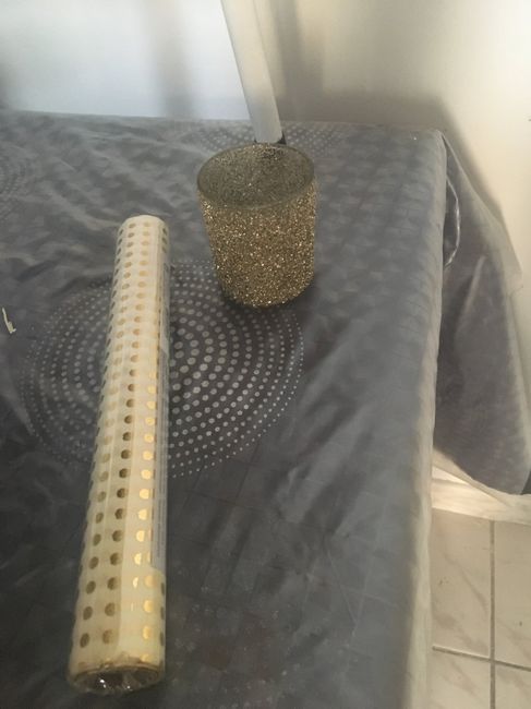 Coucou les futures mariées ! Ce matin belles trouvailles chez Action. Mes couleurs seront blanc, doré avec une touche de rose ou corail pastel. Voici les supers cadres pour mes menus, des photophores dorés paillettes et un chemin de table que je vais...