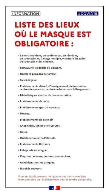 Bonjour les FM. Je me marie dans 4 semaines. Je viens de voir aujourd'hui la liste officielle des lieux où le masque est obligatoire. On le savait déjà qu'il y aurait des restrictions. Mais comme c'est un domaine privé je me disais que l'on serait...