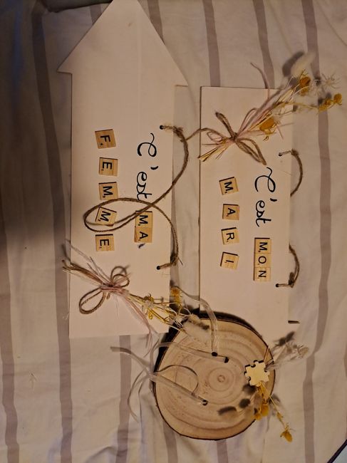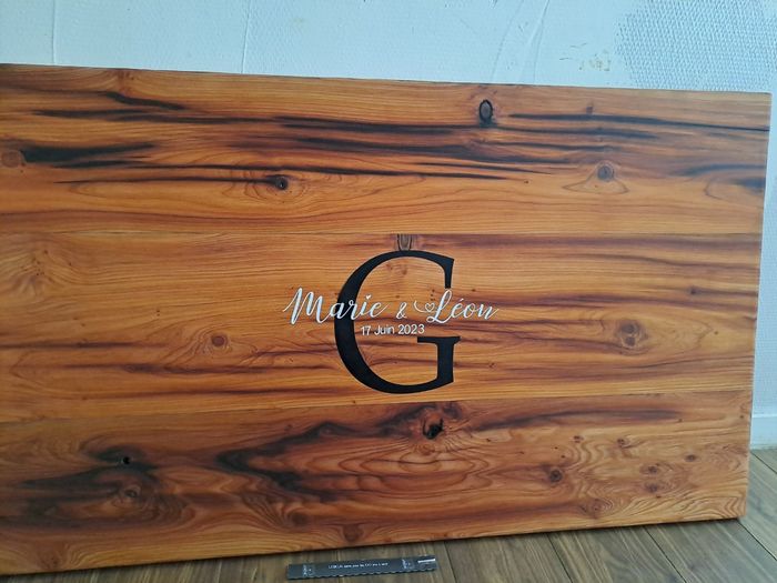 Nous souhaitions autre chose qu'un livre d'or. Et nous faisons un clin d'œil à nos témoins qui ont mis en place un panneau où les passants peuvent laisser un mot devant notre maison, il a été mis en place au J-365. Nous continuons sur le même...