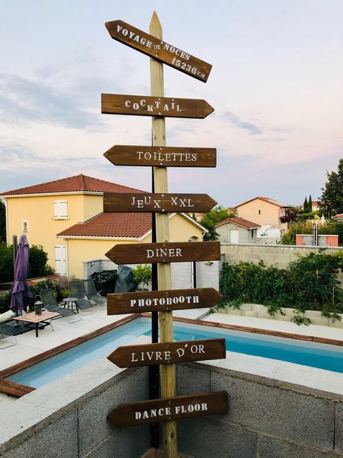 Coucou les filles nous venons de finir notre signalétique pour dans 15 jours ! Belle galère les pochoirs et les fleches avec des planches de cailleboitis 🤗 mais on fière du résultat pour pas cher au final 😊 vous aimez ? Bisous bisous