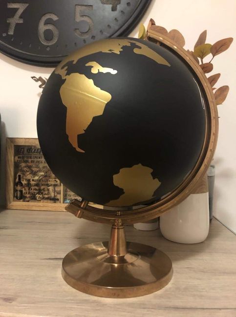 Coucou tout le monde ! Voici des photos de notre urne, pour celles qui n'auraient pas d'idées encore.. En faisant quelques recherches sur internet je suis tombée sur des globes en guise d'urnes et plus précisément sur facebook : Map.love Elle fait...