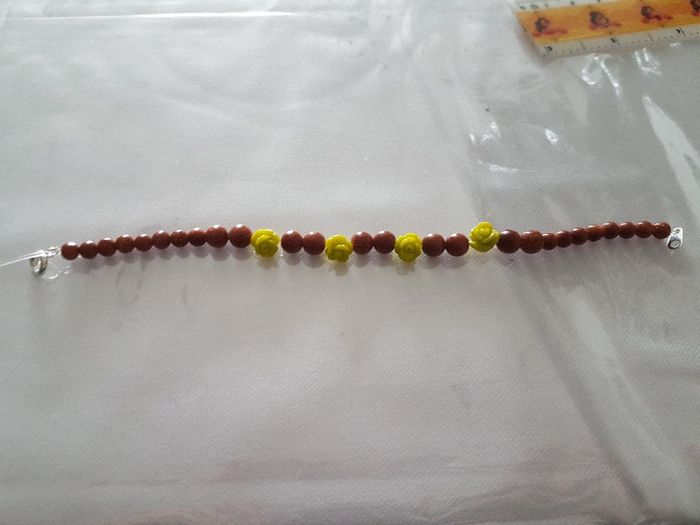 Voici les bracelets pour mes demoiselles d honneurs et ma témoin. Les perles marrons sont avec des paillettes 😁