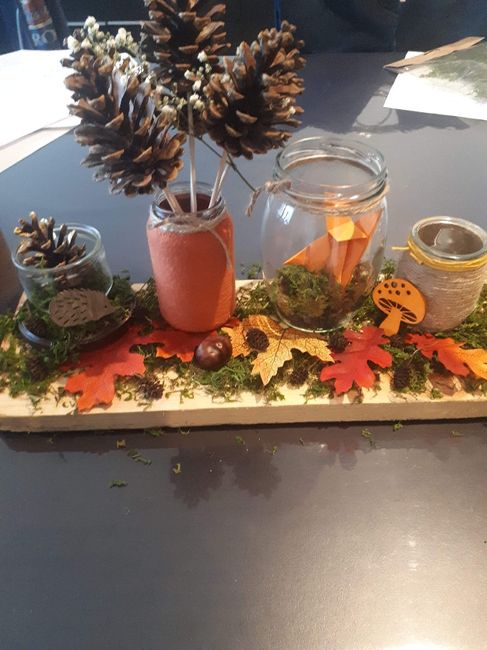 Bonsoir. Voilà j'ai fait un essai de deco de tables. J'aime beaucoup et mon conjoint aussi.Donc on a validé. 😊 C'est bien de faire un essai , ça nous a permis de voir qu'il va falloir doubler les tables sinon on ne peut pas mettre les verres 🙄