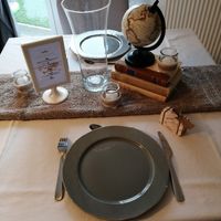 Il y a 2301 joursCoucou la commu ! Aujourd'hui on a fait des essais pour nos centres de table (on a oublié de mettre les verres) 😊 Vous en pensez quoi ? Sachant que notre chemin de table ne sera bien sûr pas une serviette de toilette, mais un chemin de table...