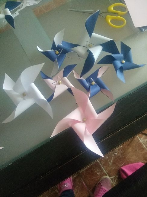 Ça y est j' ai fini mes Moulins à vent qui vont rejoindre les cœurs dans l allée de notre cérémonie laïque ! Plus d une centaine... Merci le confinement 😅 Reste a attendre l ouverture des magasins pour les enfiler sur des pics a brochettes...