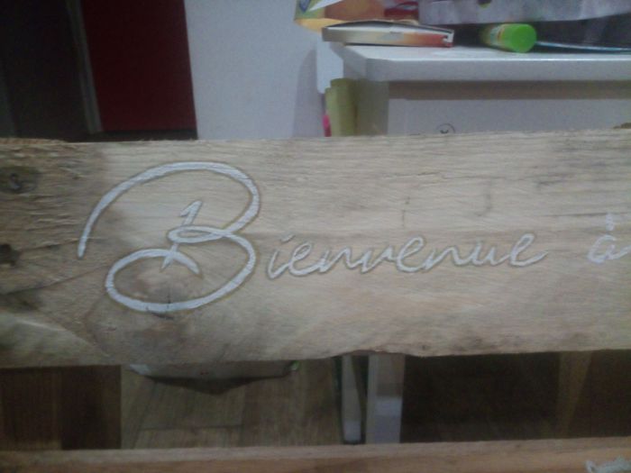 Bonjour à tous J'ai bientôt fini mon panneau de bienvenue et je me rends compte que la couleur ne ressort pas du tout et qu'on ne peut pas lire 😭Je n'avais pas envie de mettre du noir... Avez vous une idée de la couleur qui pourrait fonctionner ?...