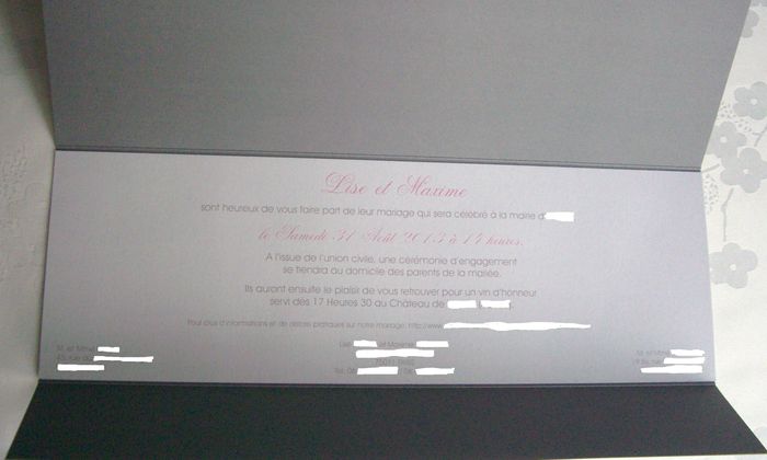Salut à tous!! Par curisosité je me dermandais quel faire part avez vous choisi (photo)??? et quand on dit vos invités pour ceux et celles qui les ont déjà envoyés? Nous avons repéré un modele qui nous plait, simple et moderne...