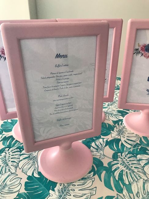 Bonjour à toutes, Voici mes cadres avec le numéro des tables et le menu à l'arrière Et vous qu'avez-vous fait pour nommer les tables ?