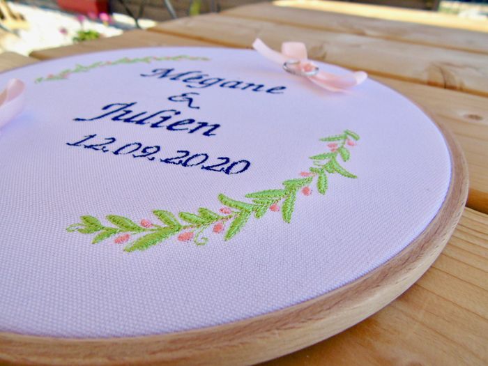 Bonjour à toutes, Aujourd'hui j'ai terminé le tambour définitif pour fixer nos alliances Qu'avez vous prévu comme support vous ?