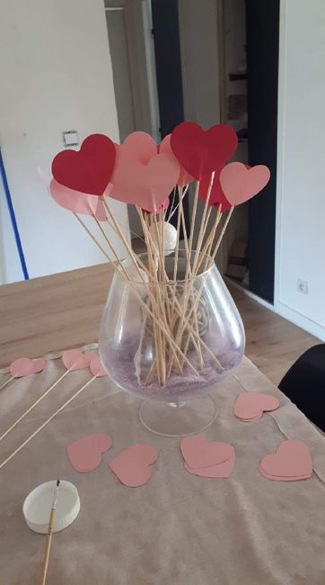 Voilà les filles avec mon chéri on a essayer nos centres de tables alors je précise qu'on a fait avec les moyens du bord c'était juste pour nous donner une base et au final on adore ... les fleurs seront des vraies et plutôt roses je pense ... qu'en...
