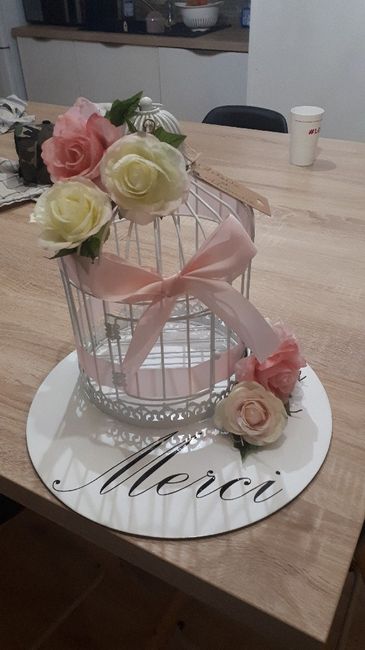 Cc les filles voilà ce matin debout 5h30 et j'ai bien avancé sur mon urne ... Évidemment le merco sera pichet sur le socle qu je dois repeindre en blanc et je pense remettre un ruban en bas de la cage qu'en pensez vous ??