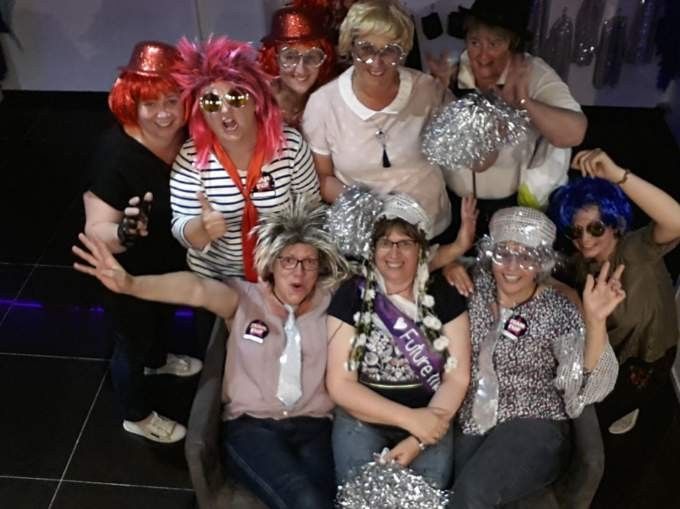 Soirée sympa avec les copines et la plus jeune de mes filles...bowling, resto original et karaoké....😉😂 Une bonne soirée franchement même si mo. Pantalon et un peu bariolé. 😂😂😂