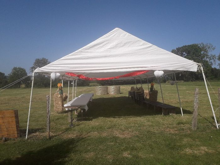 Et voilà à J-2, on s intalle pour la cérémonie Laïque et le Vin d honneur. Le chapiteau était monté depuis lundi, mais mardi matin le vent nous l a retourné...donc hier au soir nous avons remis ça...lol Étonnamment je suis zen...ça me surprend Bon...