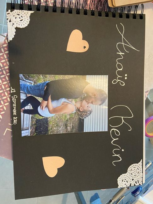 Hello la commu, je viens d’acheter mon livre d’or il a les feuilles noire à l’intérieur. On va faire avec des photos Polaroïd que nos invités colleront dedans avec un petit mot. Mais voilà je ne sais pas comment le personnaliser au niveaux de la...
