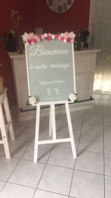 Il y a 2111 joursCoucou. Je vous montre mon panneau de bienvenue. 😃 Reste plus qu’à peindre le chevalet et il est terminé.😉 Maintenant je m’attaque à mon plan de table cerceau. 😀 Bon dimanche. ☀️