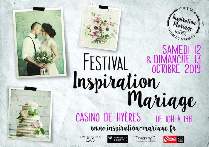 Pour cette année le salon inspiration mariage se transforme en Festival mariage une version intimiste dans un lieu d'élégance et de prestige au Casino de Hyères . Vous pourrez rencontrer dans une ambiance cosy , une sélection de prestataire de...
