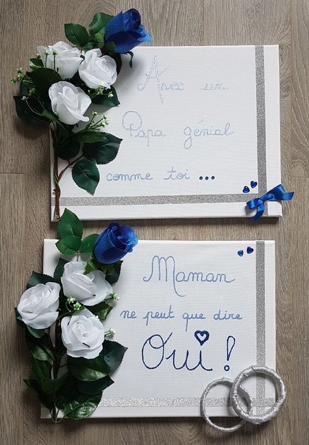 Avancée de ce week end les deux petits panneaux qui seront portés par mes petits à l église. Volontairement petite surprise pour mon homme car ce jour là aussi il a le droit d être mis en avant et pas seulement la mariée. Il ne reste qu à rajouter...
