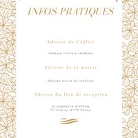 Il y a 2199 joursCoucou les marié(e)s, comment allez vous? Je me suis mise à faire les menus, save the date et infos pratiques. Pas de programme pour moi. Qu’en pensez vous? Notre thème est la vie en rose, il y aura quelque touche de blanc et doré. Merci pour vos...