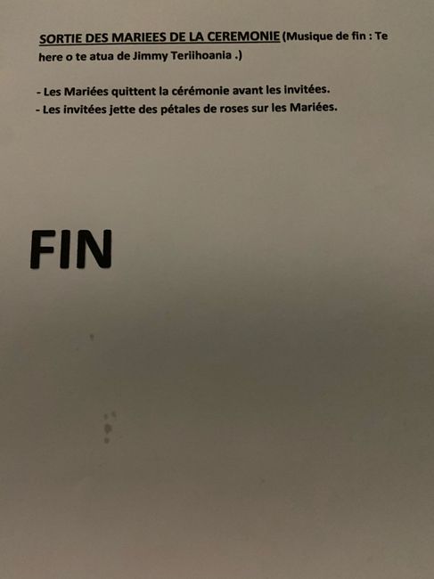 Coucou les FM !! Je viens de rédiger le déroulement de ma cérémonie laïque pour notre maître de cérémonie qui est mon meilleur ami. Je vous met le rendu dites moi ce que vous en pensez !! J’ai tout donné lol