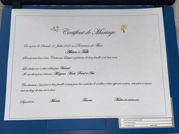 Coucou les filles !! J’ai eu cette super idée en cherchant sur internet, de préparer moi même un certificat de Mariage pour notre cérémonie laïque ! Que nous signerons avec nos témoins et notre maître de cérémonie !! Je trouve que c’est un super...