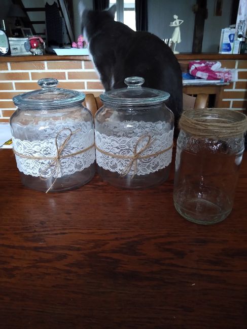 Coucou tout le monde, je voulais vous faire partager ce que j'ai réalisée pour notre mariage sur le thème champêtre. Sur la première photo, il y a le modèle de photophore qui sera disposé sur la table de repas et les autres plus grand récipient...