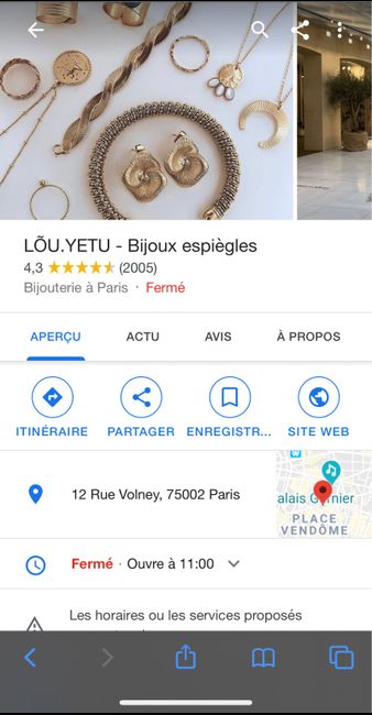 Bonjour à toutes, Je suis actuellement sur Paris et je voudrais acheter ma parure de bijoux pour mon mariage qui a lieu dans 10 jours ! Je ne connais pas bien la capitale, je voudrais un collier fil de pêche avec un strass et des petites boucles...