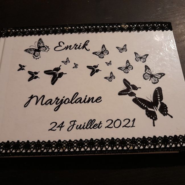 Livre d'or reçu. Il est tout blanc on va le customisier. Que pensez vous de mon ébauche ? L'écriture est juste pour donner une idée je vais mettre un sticker plus joli, la j'ai juste écrit sur un papier que j'ai posé. Je n'ai encore rien coller je...