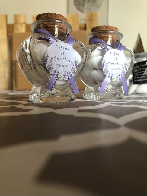 Aujourd’hui, accompagné de ma maman, nous avons mis nos dragées dans les petits pots en verres en forme de coeur, puis agrémenter d’un ruban avec un autocollant personnalisé. Je suis vraiment contente du résultat, je tenais à vous le faire partager 🥰...