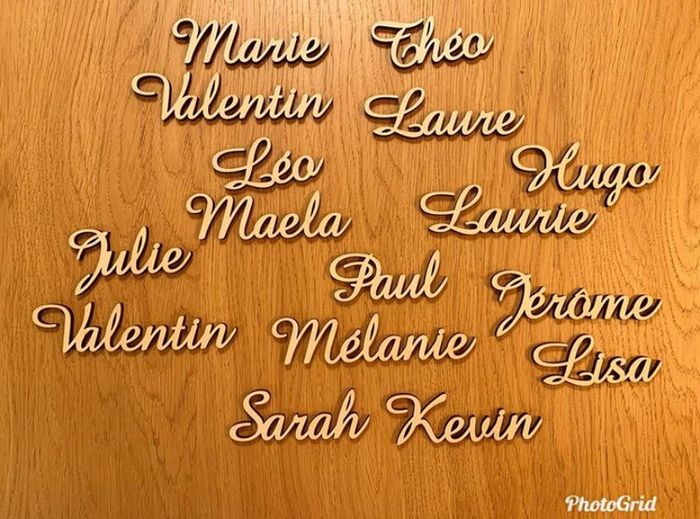Salut les Bride, hier j'ai reçu les prénoms des invités que je mettrai sur table pour les placer, je voulais qqc d'original. J'ai été agréablement surprise de la qualité et de la taille surtout ! Si ça vous intéresse, faite un petit tour sur Etsy...
