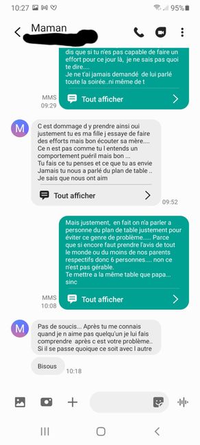 Bonjour a toutes et a tous ! Tout se passait bien jusqu'à hier soir dans le plan. De table.... quand malheur j'en parle a ma mère 😱😱😡 Pour situer un petit peu , nous avons notre table d'honneur avec témoins et conjoints, et ensuite 4 tables de 10...