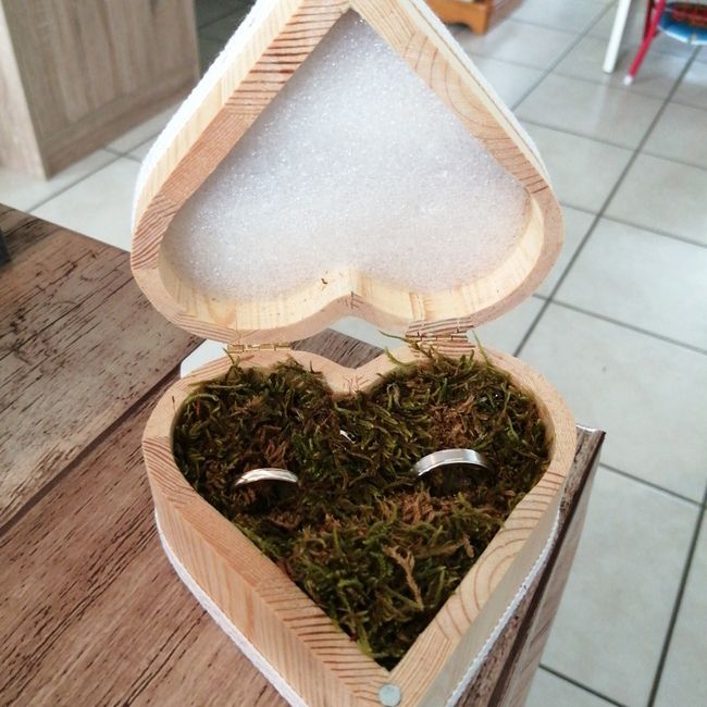 Bonjour à tous et à toutes, On continue les préparatifs malgré les événements sanitaire du moment Que pensez vous de notre boîte à alliances ainsi que nos marque place ? Je suis ouverte à tous (conseils, avis..) 😘