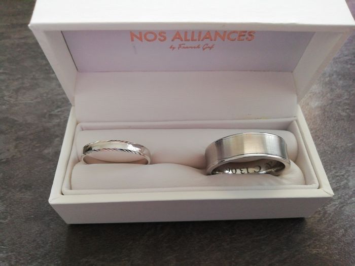 Bonjour ! Alliances reçues ! Nous sommes trop content malgré que la mienne est un peu grande. Mais c'est tellement chouette de pouvoir les glisser à nos doigts 😍