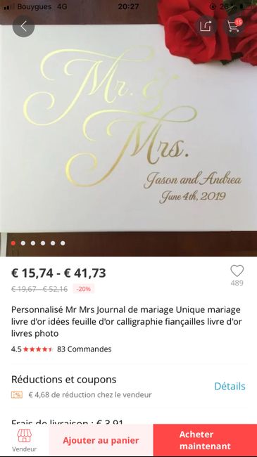 Les filles, J’hésite pour mon livre d’or. J’ai trouver ça sur AliExpress ! Je le trouve simple jolie et élégant. Il y a de bon avis avec photos. Et vous, comment sont vos livre ? 😉