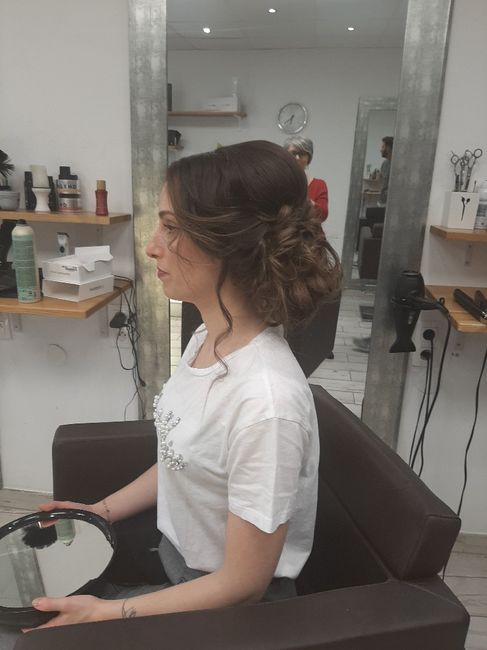 Le coiffeur m'a fait 2 coiffures et mon choix se porte pour ce chignon ,car ma robe est travaillée devant et derrière.