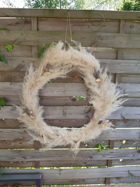 Cc la communauté ! Je me suis lancée dans le début de la déco de mon arche. Ce n est pas fini, il manque les fleurs qui seront à gauche en haut dans l'angle . Les contenants à pampa ne sont ils pas un peu petits ? Qu en pensez- vous? Merci pour vos...