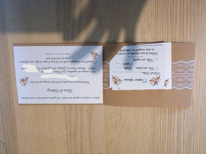 Coucou ! Ça y est nous avons fini d assembler nos faire parts et ils sont tous envoyés ! On attend les réponses de nos invités avec impatience ! Merci à mes petits rubans Désolé pour la photo à l envers !