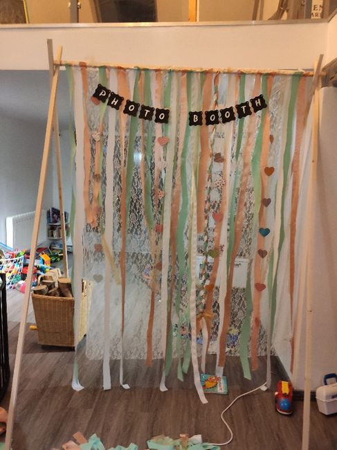 Coucou les filles je vous montre mon fond de photobooth je suis plutôt fière et surtout je m'en sors pour moins de 40 euros Reste plus qu'à trouver comment le faire tenir au sol sans qu'il ne penche