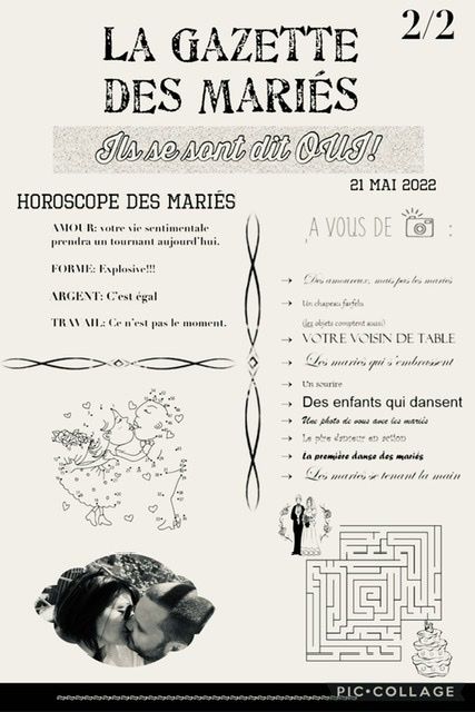 Bonjour à toutes les FM, J’ai vue que certain(e)s font des « Gazette des Mariés ».Du coup j’ai tentée de faire la mienne et je voudrais votre avis.Merci beaucoup et très beau mariage à toutes